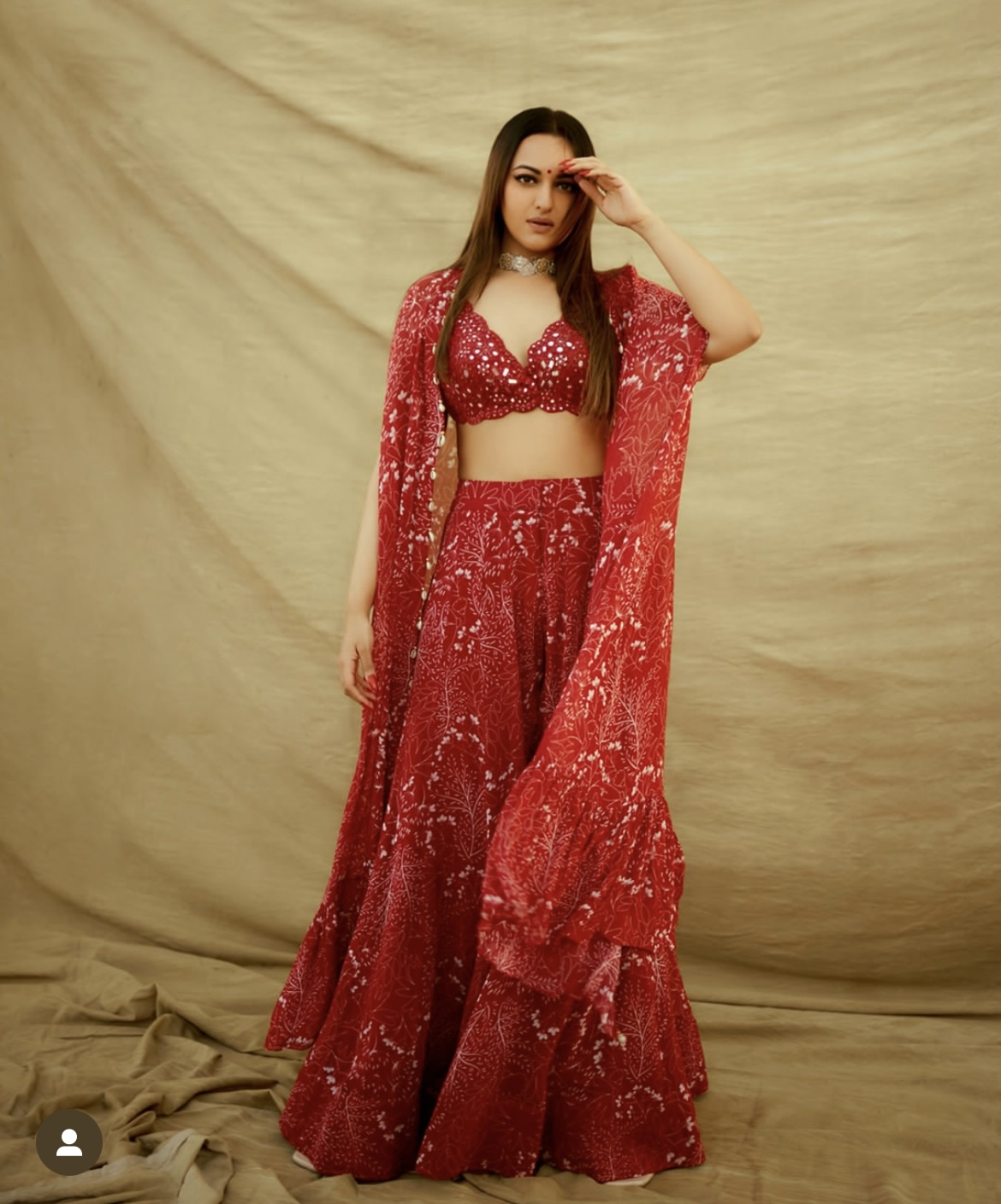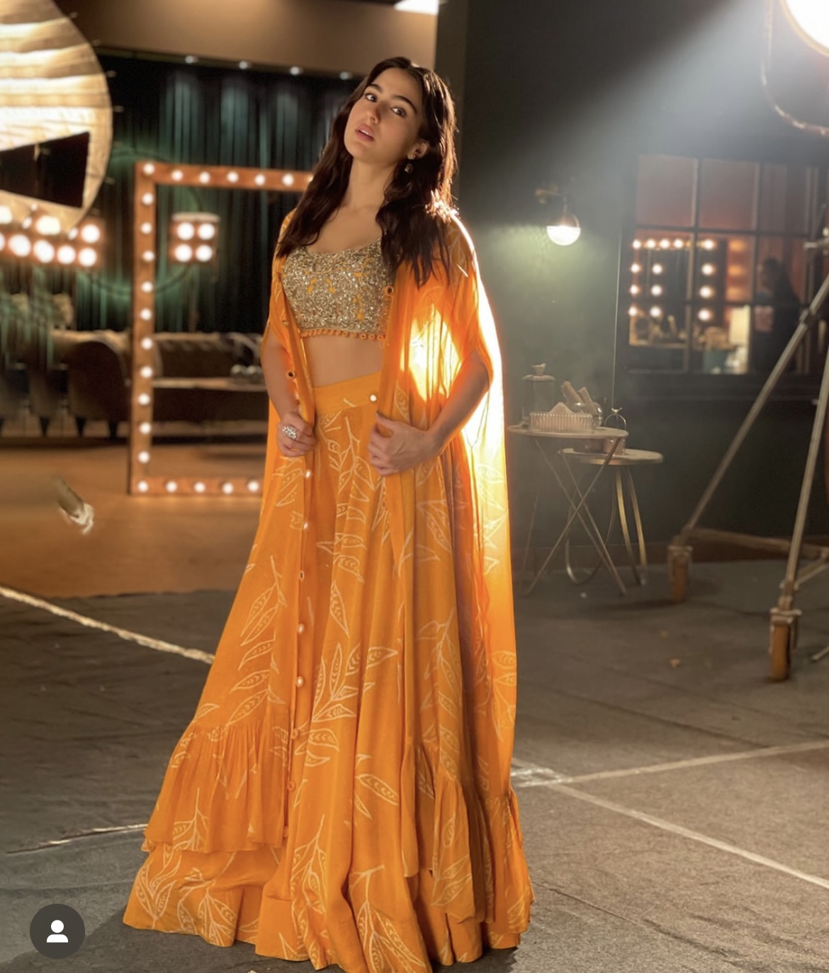 One thing that I know isn’t unique to Arpita Mehta, but done so well by her, is the crop top with the shrug. I know the terminology for ethnic wear is probably totally incorrect, my apologies. But I love it. I’m a curvy girl, so I never have a completely flat stomach to wear these banded type of crop tops, the shrug makes it look so sophisticated and also gives it a better fit.