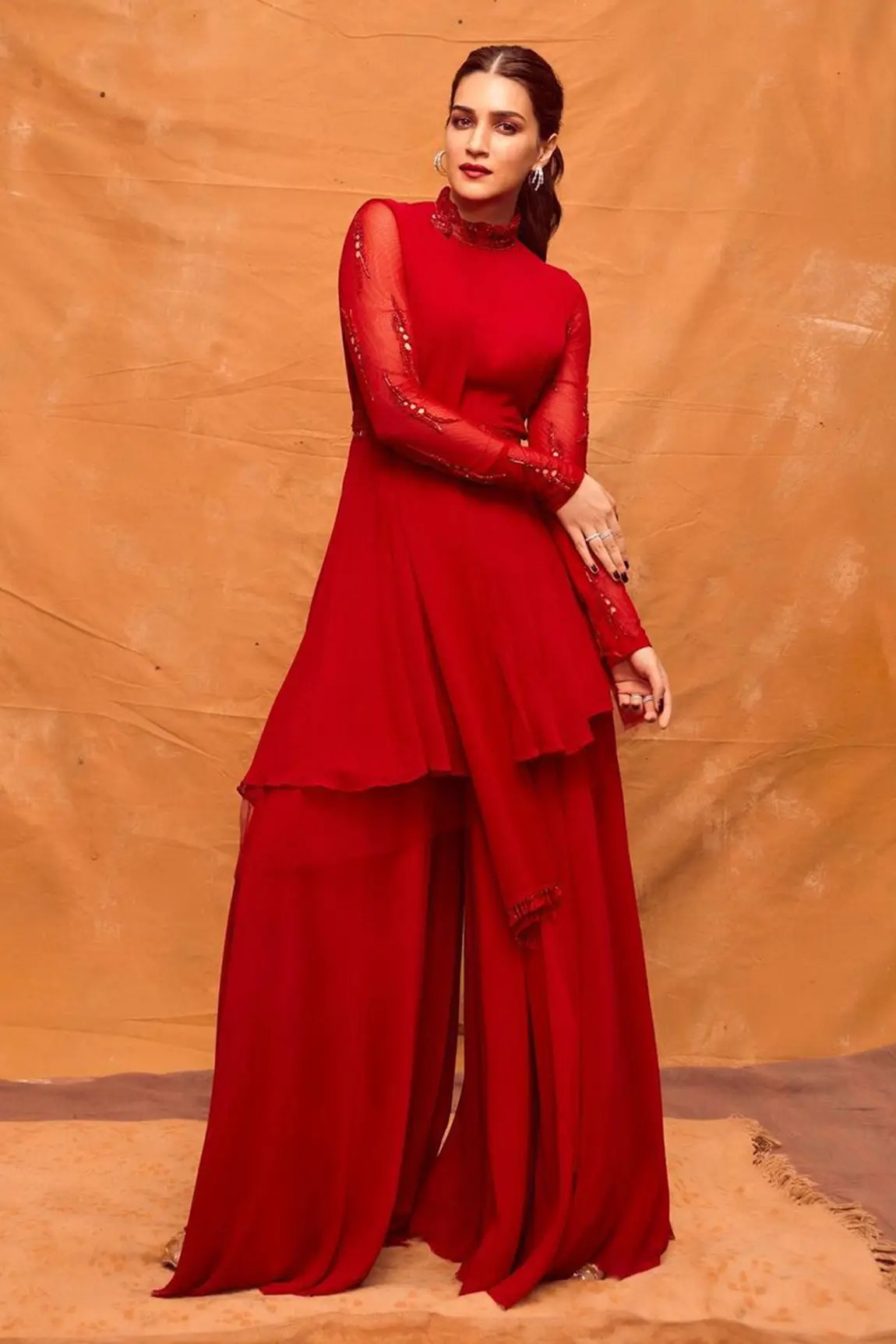 Of course we know Kareena can carry a garbage bag, but in this instance I want to talk more about Tapsee’s fit. She normally has too much going on, but in this case the too much is working in her favour. The headband jewelry not only makes her stand out, but we are also entranced with the immense amount of fabric revolving around her. It just works.