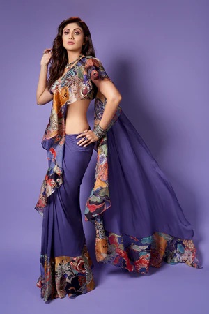 Regardless the fabric is as such – it’s flowly and hence automatically flattering. The saree drape will enhance and showcase the embroidery in a subdued kind of way.